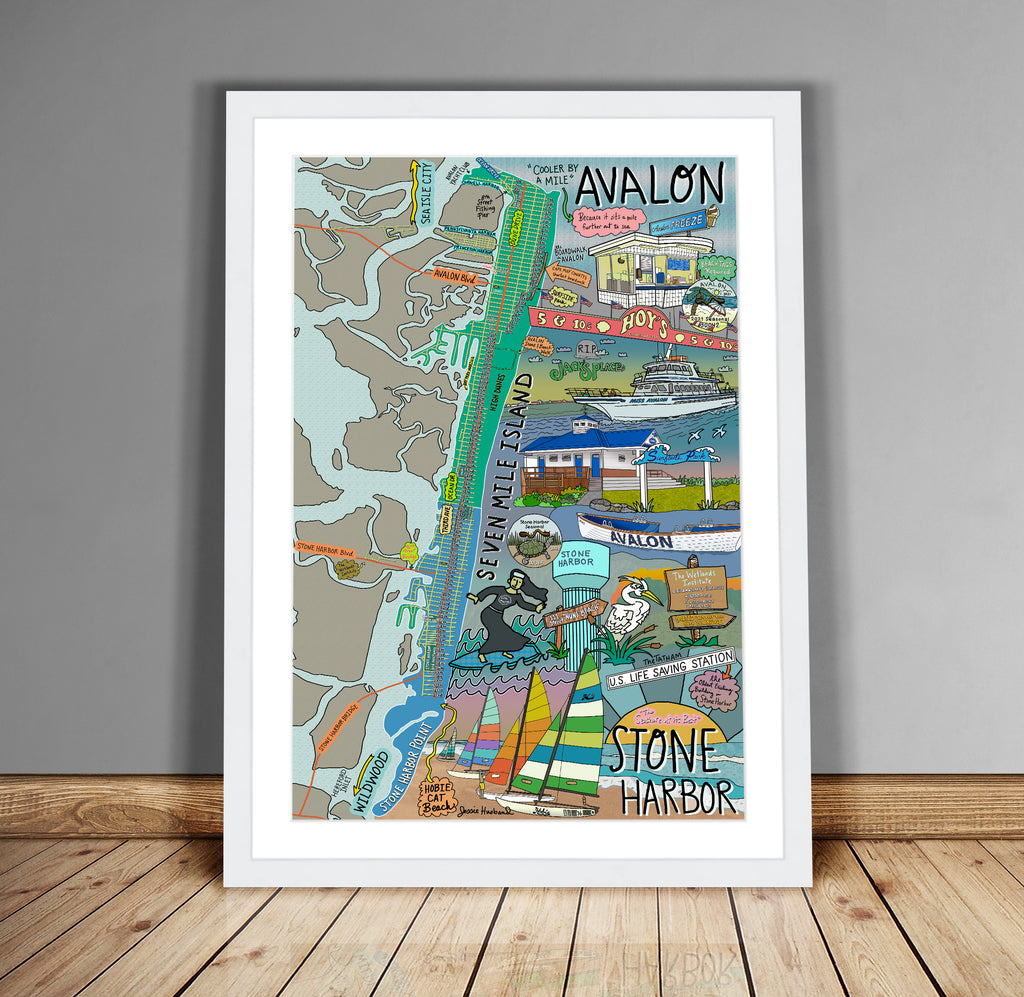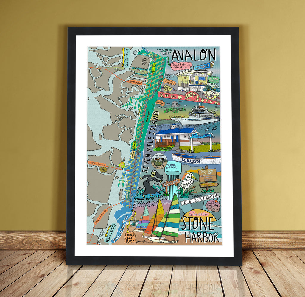 Map of Avalon and Stone Harbor, New Jersey (customization and framing options available)