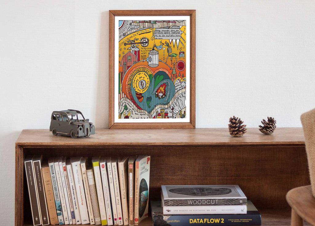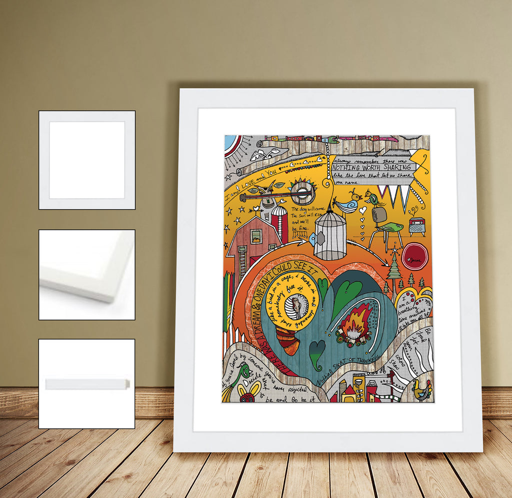 Prints made to order and printed on thick, 88lb. archival matte art paper w/ a white border to allow for easy framing.
