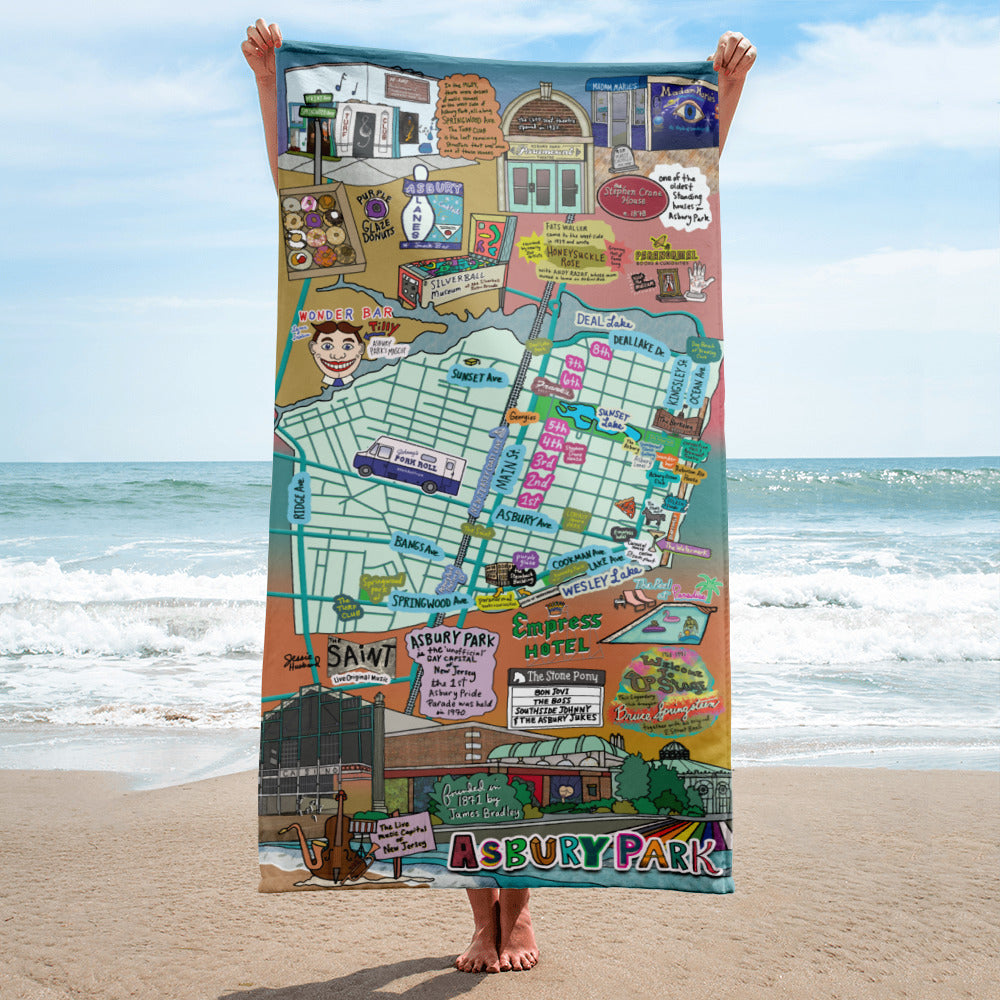 Map of Asbury Park, NJ Beach Towel