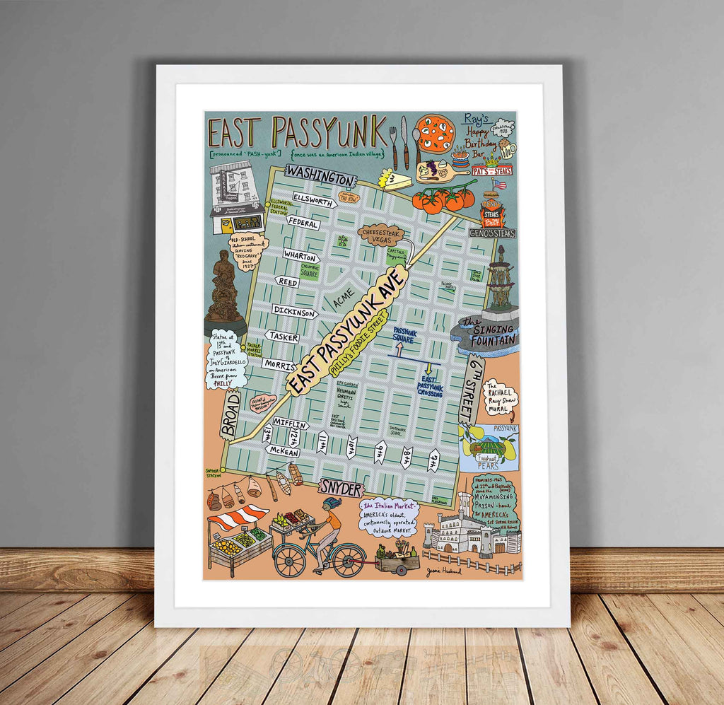 Map of East Passyunk, Philadelphia (customization and framing options available)