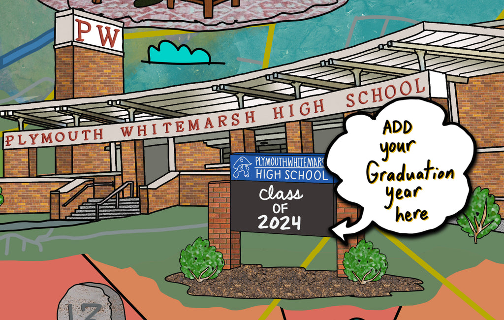 Option 1: Add the house icon at any address on the map OR add a graduation year to the Plymouth Whitemarsh sign. This option is $20.