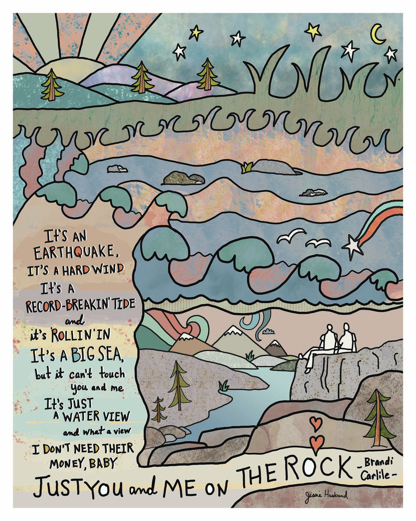 Illustrated Lyrics from Brandi Carlile's song, You and Me on the Rock.